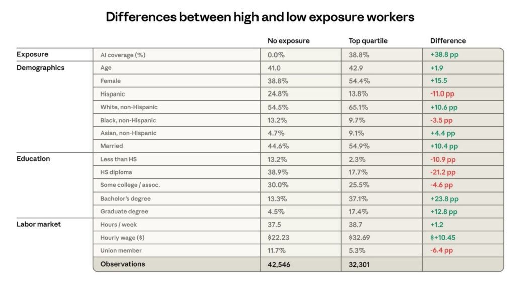 The Anthropic labor study analyzed millions of real-world AI interactions and found something remarkable.